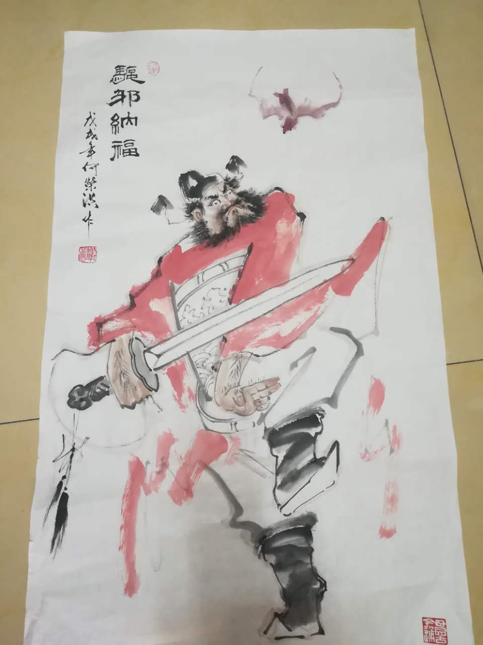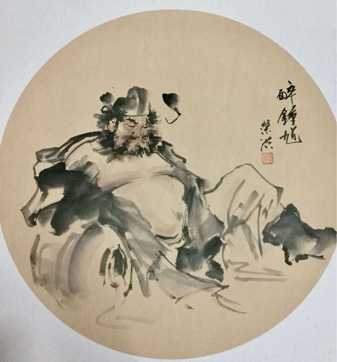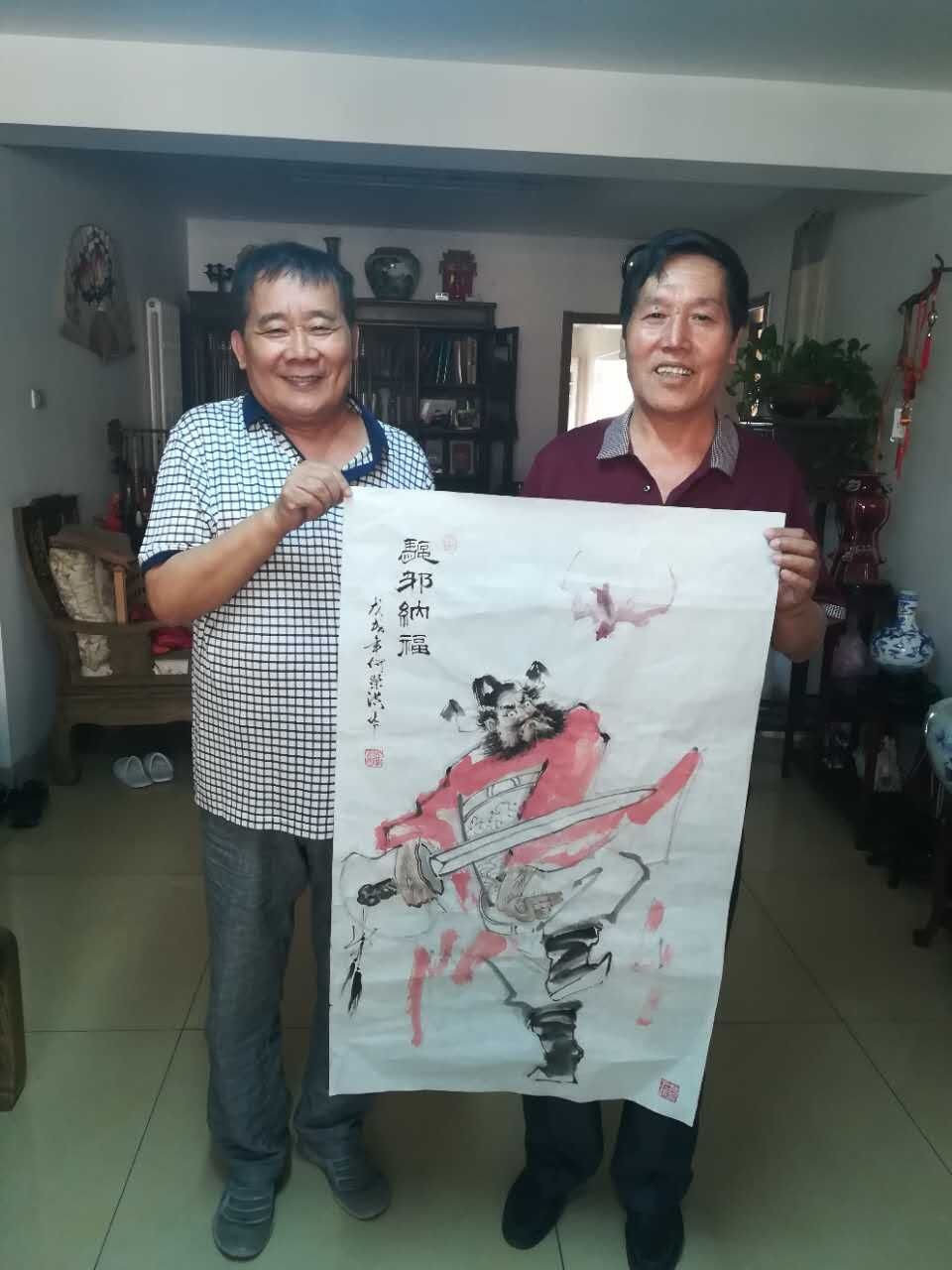 因为他有西画的基楚。所以他的国画具有熟练的写实造型功力和国画写意的传统修养。他注意素描关系,融西画技巧与国画技巧于一体,具有鲜明的时代气息和浓郁的民族特色。他的人物、山水、花鸟鱼虫各有千秋。但最有特色的还是他的人物画。他画的《王冕习荷图》、《达摩图》、《对酒图》等,构思新颖,运用点睛之笔突出人物性格特征,神态自然,栩栩如生。颇有呼之欲出的感觉。特别是他画的钟馗,十分生动。由于人见人爱,到目前已画了几百幅钟馗,还是供不应求。孙其峰、龚望、李贺年、华非、于复千等老艺术家都为他的钟馗题过词。著名书法家龚望称赞他的《钟馗图》“恰到好处,足可已把鬼打跑”。